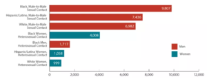 White men having sex with men runs in third place of new HIV diagnosis, with around 6,982 reported new cases in 2017 (CDC, 2019a).